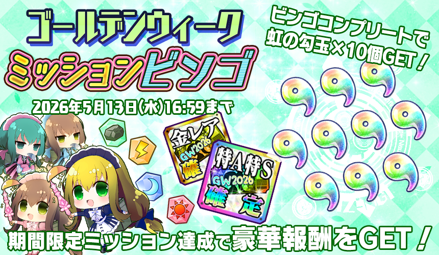 ※ミッションビンゴ画面は開催期間終了と共に消失します。ビンゴ画面で報酬獲得が行えるのは開催期間中のみです。