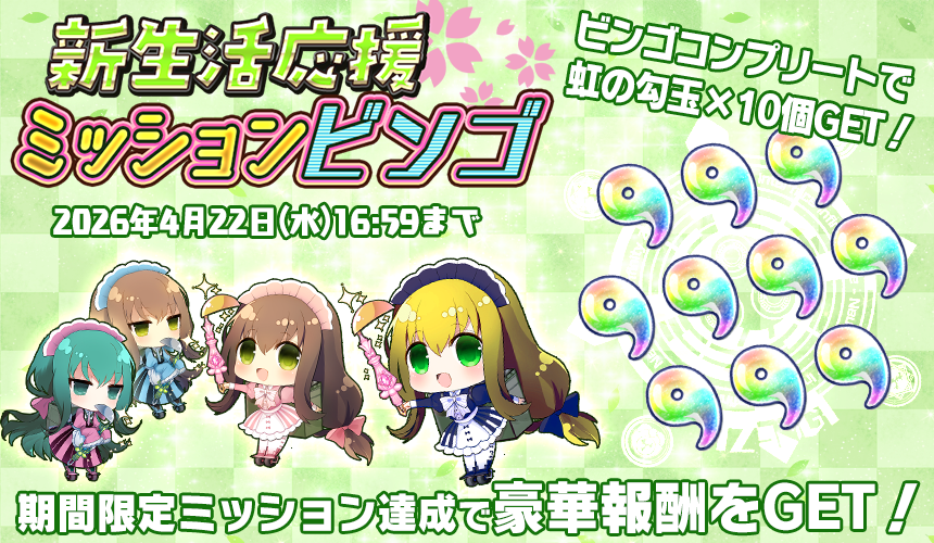 ※ミッションでの各種カウントは本ビンゴ開催期間中の実行回数が対象となります。イベント期間外の実行回数はカウントされません。
