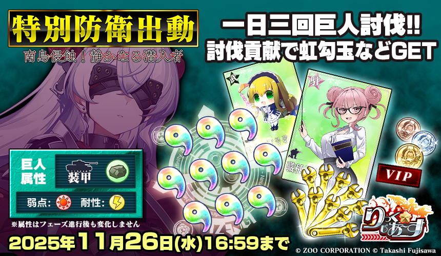※その他装備にかかわらずこの式神を装備していると共闘戦闘時に敵の遊撃要塞の装甲が10%ダウン